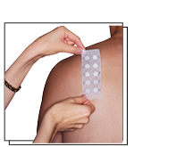 そして準備した試験用シートを椎骨付近の背中上部に貼り付けます。それ以外の代替的な貼付部位には、上腕の外側部分があります。