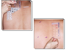 刺激性接触皮膚炎の診断はアレルギー化学成分を除外することに基づいているのに対し、パッチテストはアレルギー性接触皮膚炎を診断するテスト方法です。アレルギー性接触皮膚炎を診断するパッチテスト技術は、100年以上にわたって実施されており、現在の手法は試験材料(化学品、食物など)と診断装置(チャンバー)を使用する、既に確立された原理に基づいています。パッチテストは患者の上背部の正常皮膚部位を用いて、アレルギー反応を再現させます。アレルゲンを塗布したチャンバーを患者の上背部に貼り、48時間後にはがします。72時間から96時間後に反応が出始め、はがしてから7日後に再び反応が出る場合もあります。パッチテストの診断価値は、被験物質、媒体、濃度、結果判読、患者様へのカウンセリングによって決まります。パッチテストは自宅、職場またはレクリエーション環境など日常身の回りにある物質を対象としています。